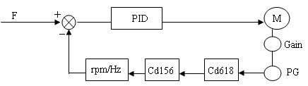 PG脈沖輸入范圍為50-2048p/r,測速傳感器為4p/r。以cd156所設定的數值進行內部倍率換算。