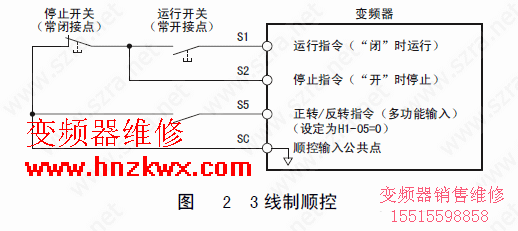 設定3 線制順控時,請在正確設定多功能輸入端子的參數(圖3.2 中H1-05 = 0: S5 端子)后,再進行控制回路的接線作業。如果設定步驟錯誤,則可能會因機械突然起動而導致人身事故。