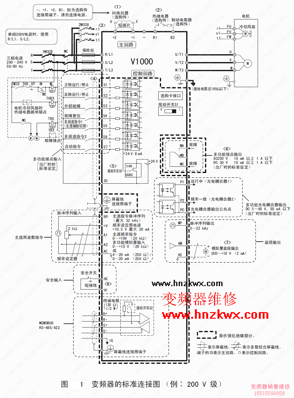 示圖:V1000安川變頻器標準連接圖(注:點擊看大圖)