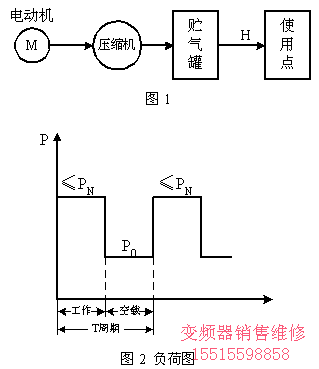 對空氣壓縮機其工藝流程如圖1,其工作方式是短時工作的負荷圖2。