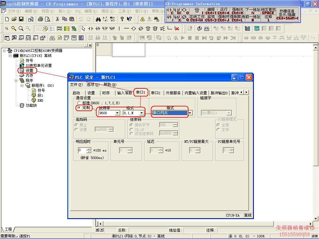 PLC 的設(shè)置:(通過CX-P 軟件)通過CX-P 軟件與PLC 連接后,打開設(shè)置,將PLC 的串口1設(shè)置