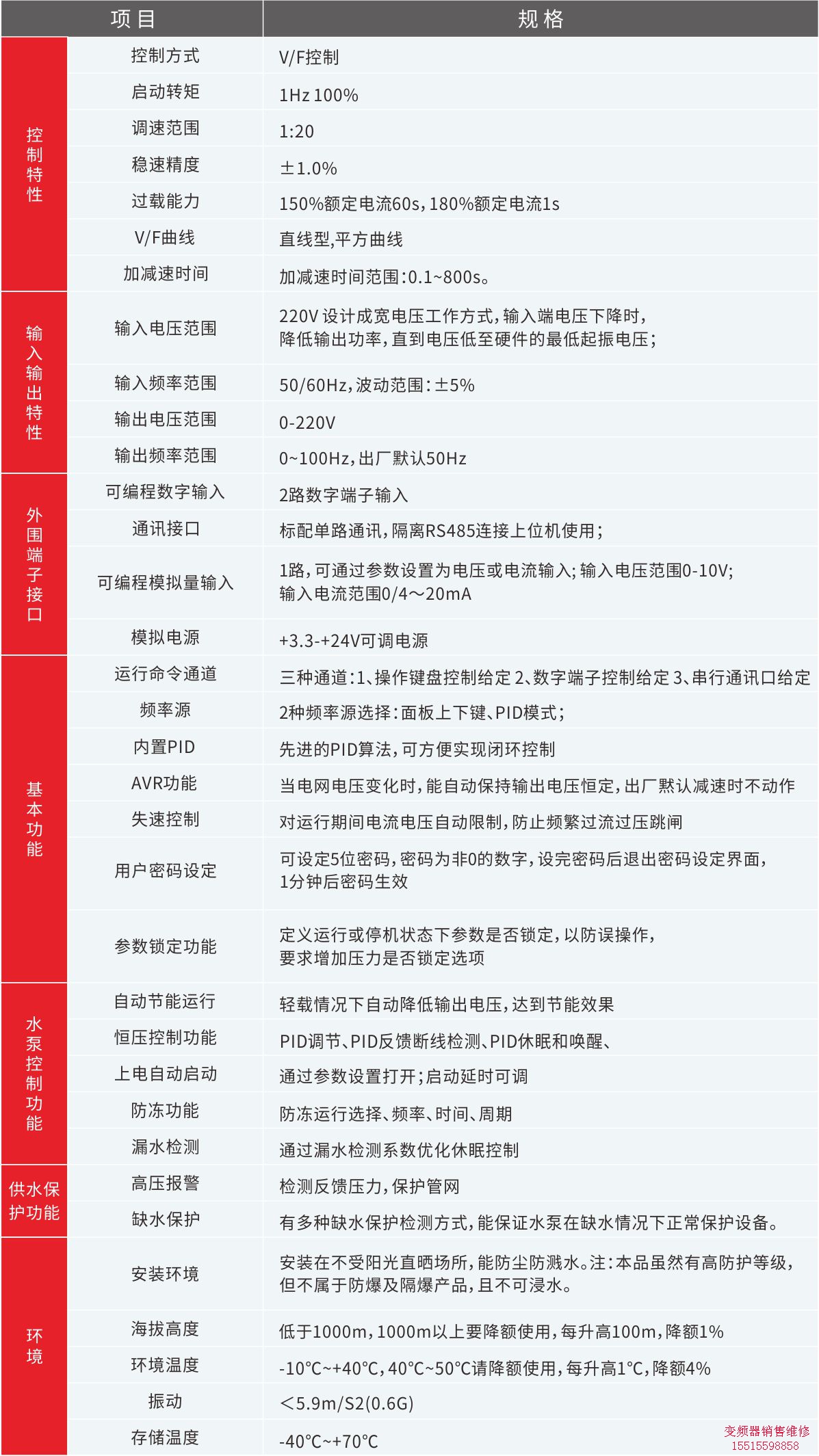 單相220V輸入,三相220V輸出,功率范圍0.75-2.2kW傳感器供電電壓可調(diào)(5-24V),