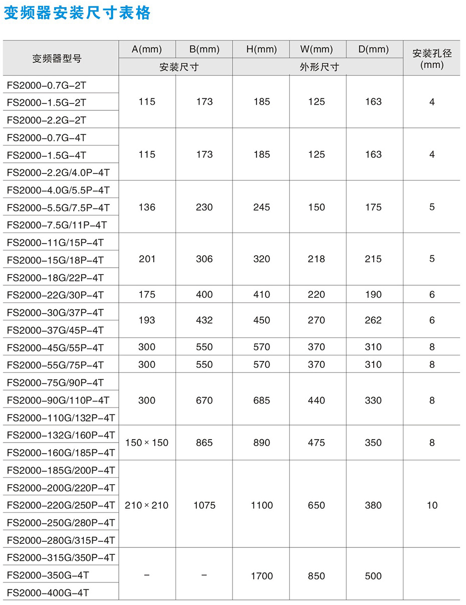 變頻器型號及技術表格