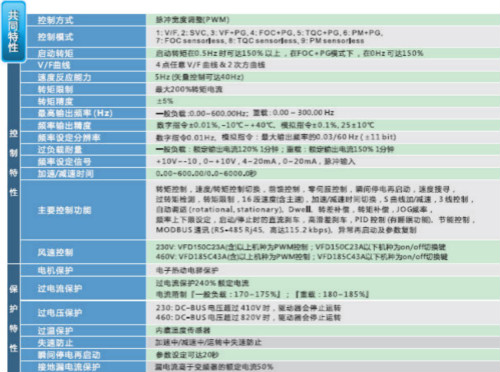 · 起動轉矩: 0.5Hz時可達200%以上;FOC+PG下,在0Hz可達200%