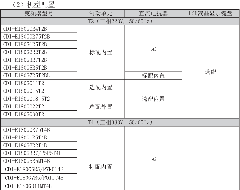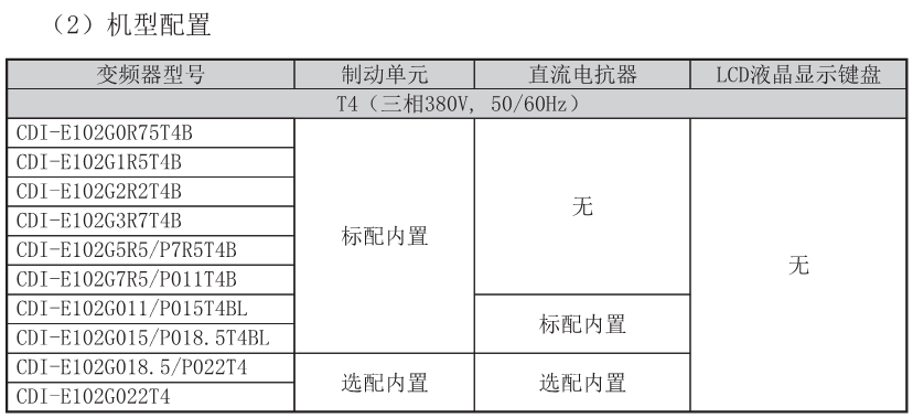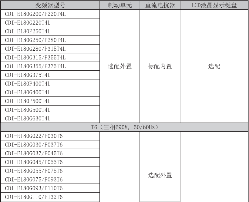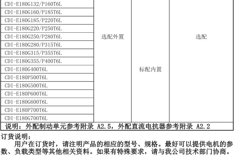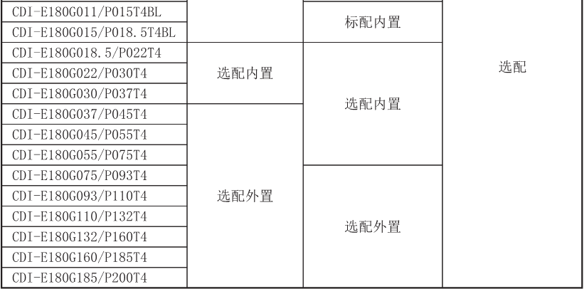 15kW及以下標配內置制動單元,18.5kW-30kW選配內置制動單元,37kW及以上外配制動單元,11kW,15kW,200kW及以上標配直流電抗器,18.5kW-55kW可選配。
