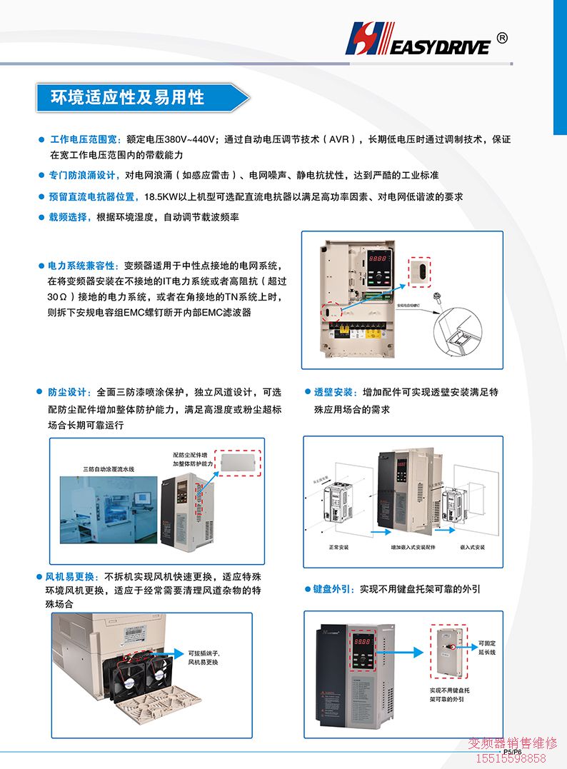 采用開環矢量和V/F控制方式, 功率范圍覆蓋0.75kW~4kW,具備 I/O擴展功能,支持多種通訊擴展卡等擴展能力;具備滿足不同工藝要求的功能,如擺頻控制、多段速控制,簡易PLC控制,PI控制、定長控制、下垂控制、自動節能運行等一系列實用的功能。