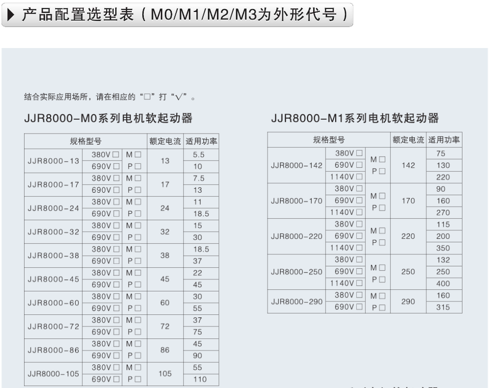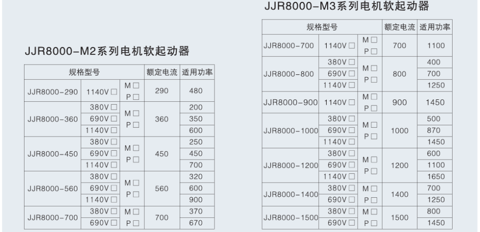 JJR8000系列智能型電機軟起動器是采用電力電子技術、微處理器技術及現代控制理論技術生產的具有先進水平的新型起動設備。該產品能有效的限制異步電動機啟動時的起動電壓,可廣泛應用于風機、水泵、輸送類及壓縮機等重載設備,是星/三角轉換、自藕降壓、磁控降壓等降壓啟動設備的理想換代產品。